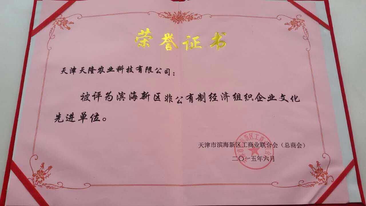 2015年6月19日,在濱海新區(qū)非公有制經(jīng)濟(jì)組織紀(jì)念建黨94周年表彰暨“四信”理想信念教育實(shí)踐活動(dòng)工作交流會(huì)上,天津天隆農(nóng)業(yè)科技有限公司榮獲“濱海新區(qū)非公有制經(jīng)濟(jì)組織企業(yè)文化先進(jìn)單位”、“濱海新區(qū)非公有制經(jīng)濟(jì)組織先進(jìn)基層黨組織”稱號(hào),其中,天隆公司科研部部長東麗同志榮獲“濱海新區(qū)非公有制經(jīng)濟(jì)組織優(yōu)秀共產(chǎn)黨員”稱號(hào)等多項(xiàng)殊榮。