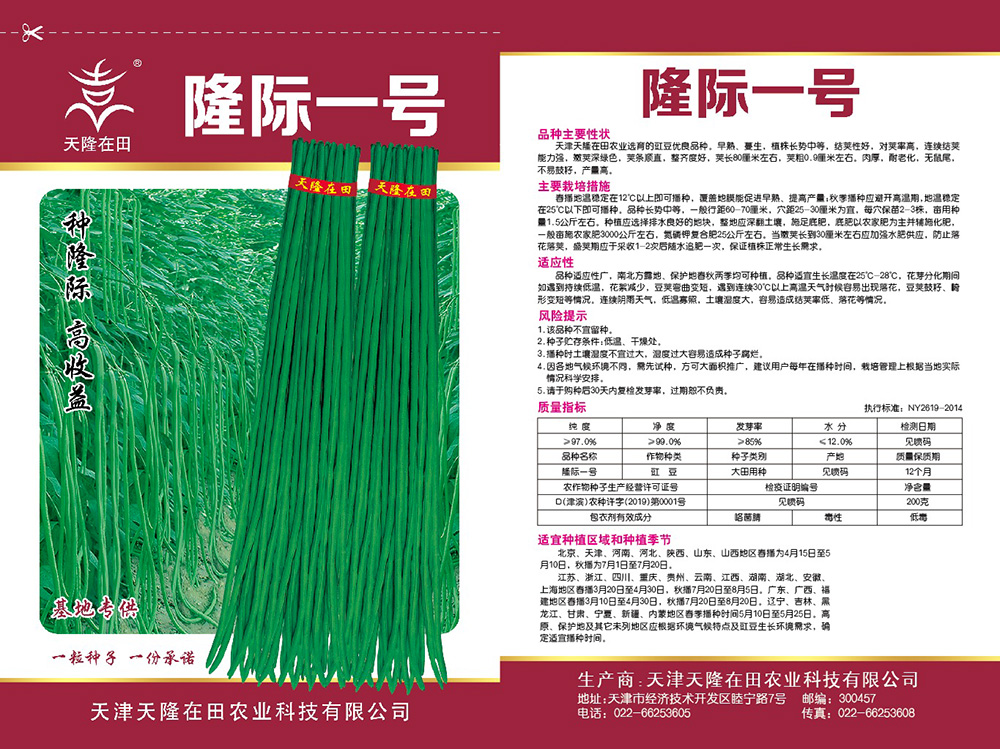 天津天隆農(nóng)業(yè)科技有限公司成立于2003年1月,主要從事農(nóng)作物新品種選育研究、利用生物科技修復(fù)改良土壤研究、利用植物...